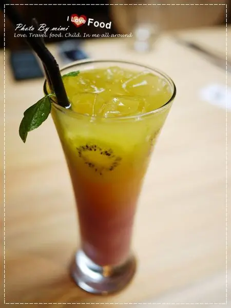裡面是葡萄汁.鳳梨汁.奇異果片.薄荷葉裝飾