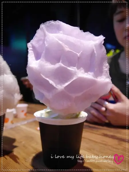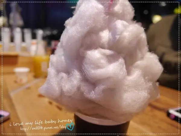 上面是灰色的棉花糖,吃起來就是棉花糖的味道