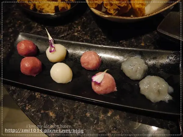 拼盤裡有四種口味的手工丸,每一種都好吃啦!