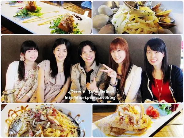 然後我很聰明,跟大家說在吃得很狼狽、杯盤狼藉之前,先來合照一下吧!