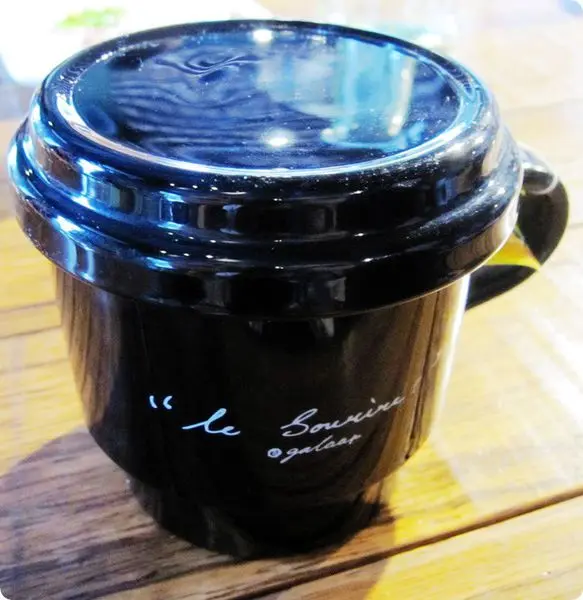 茶包拿起來可以放在杯蓋上,很貼心的設計。