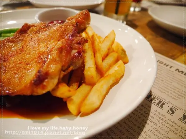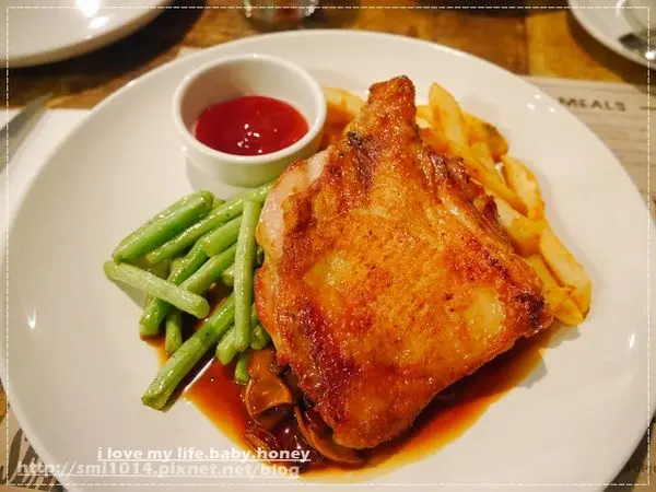 姐點的蘑菇雞腿排套餐走的是美式路線