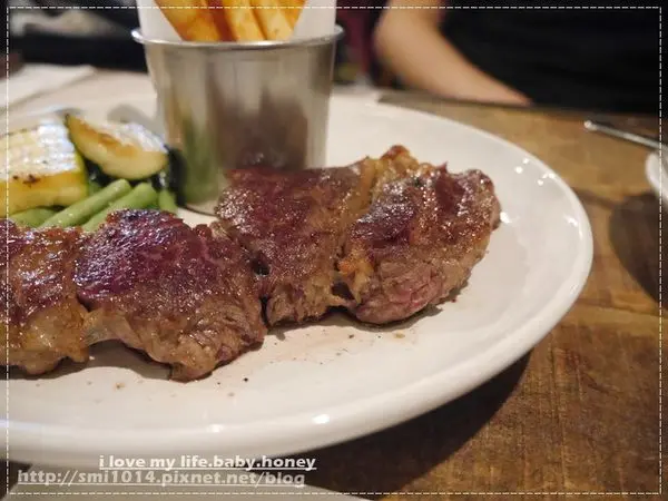 10盎司的肋眼一個人享用剛剛好,一旁還有四季豆跟櫛瓜增添清爽度