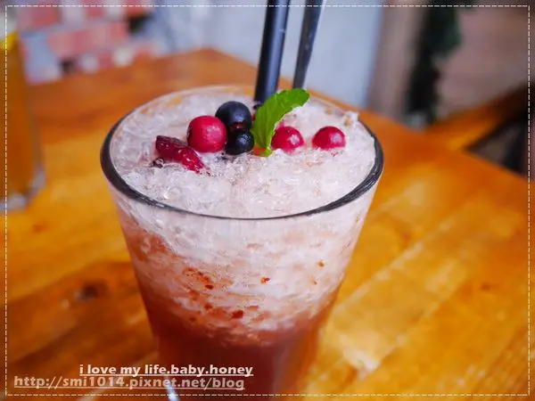 喝起來就是野莓的味道酸酸甜甜的,配上氣泡蘇打 真的好消暑