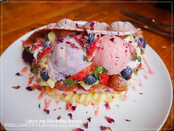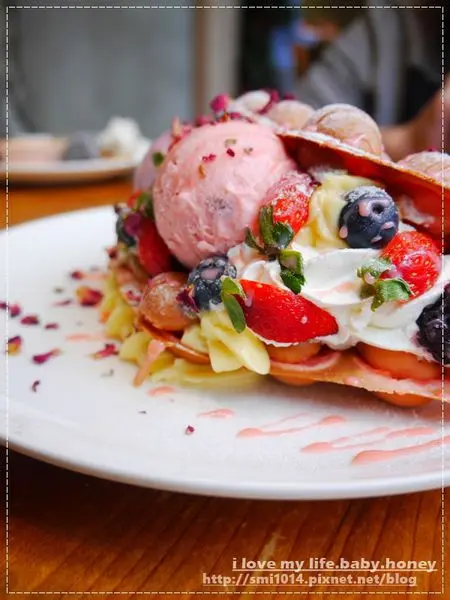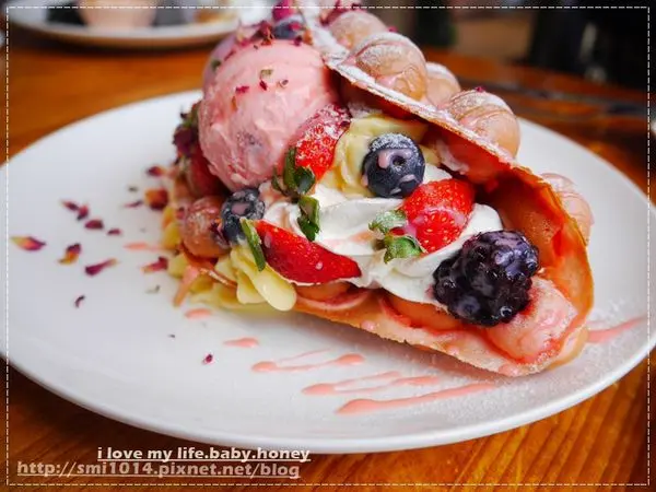 還附上藍莓冰淇淋和草莓冰淇淋,溫熱的雞蛋仔和著冰涼的口感