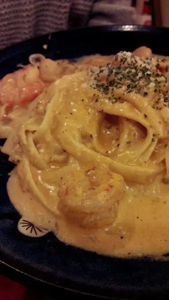鮮蝦干貝茄汁奶油寬麵 NT.150元