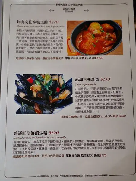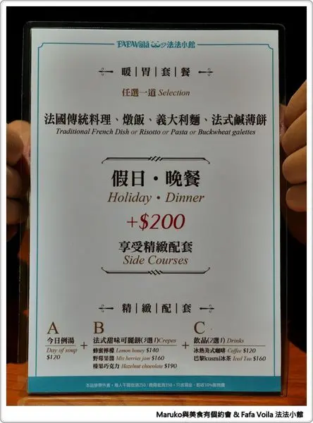 各式的料理可以+200元搭配成套餐,而甜點有法式薄餅可以選擇,實在是太超值了。