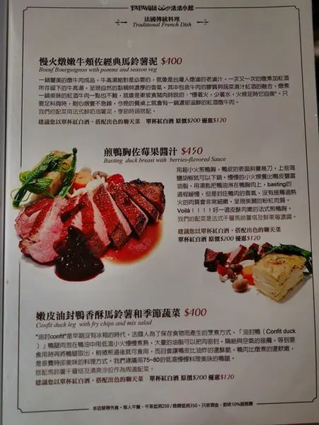 隨餐搭配了一柸紅酒,搭配這天的主食鴨胸剛剛好,這裡的紅酒也有單杯販售,用餐的時候搭配上