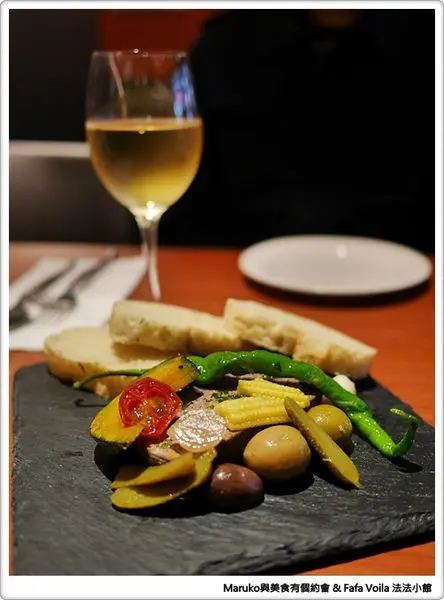 一旁搭配著橄欖、時蔬還蠻開胃的。