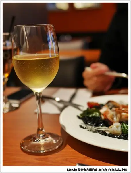 白酒喝起來帶有一點甜味酒精濃度並不會太厚重搭配這天的海透抽佐墨魚汁黑黝黝燉飯剛剛好。