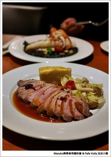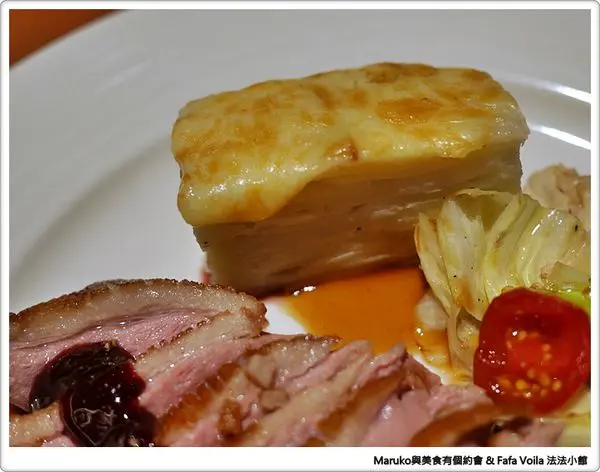 而這個層層堆疊的馬鈴薯片是鴨胸肉的靈魂配角,切成片狀的馬鈴薯上面有一層厚厚的焗烤,吃起來在嘴裡會散發出奶油的香氣,卻不會讓人感覺油膩,感覺也可以拿來當做前菜也不錯。