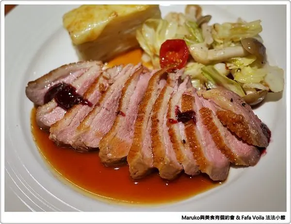 淋上的莓果醬,甜甜的不會太酸搭配著乾煎的鴨胸肉一起吃,又是另外一種讓人喜歡的風味。