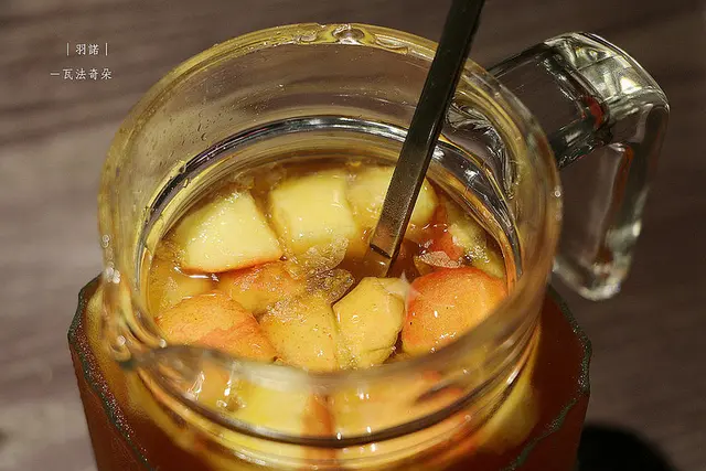 裡面加了許多水果 有百香果 蘋果....等 喝起來酸V啊酸V 還不錯喝~~