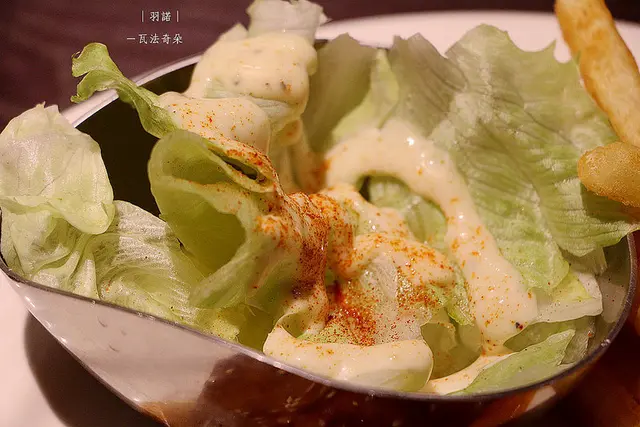 還有附上薯條 旁邊其實有松露醬可以沾 但是因為服務生沒介紹 我們都以為那個是沙拉醬