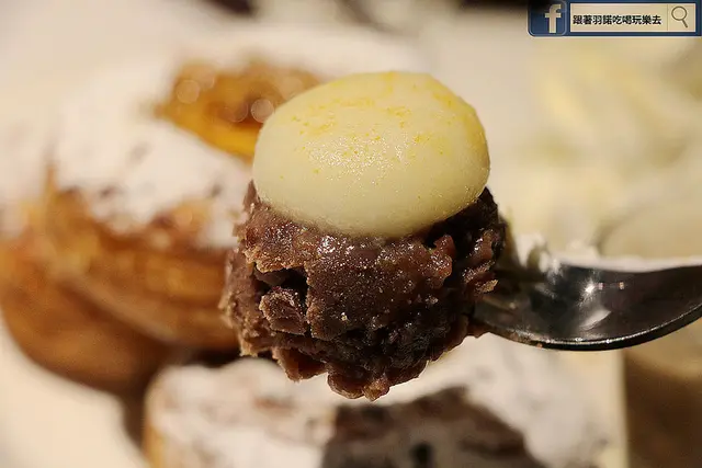 紅豆泥上擺了一顆麻糬 麻糬口感扎實 加上綿密不甜膩的紅豆泥 好看又美味