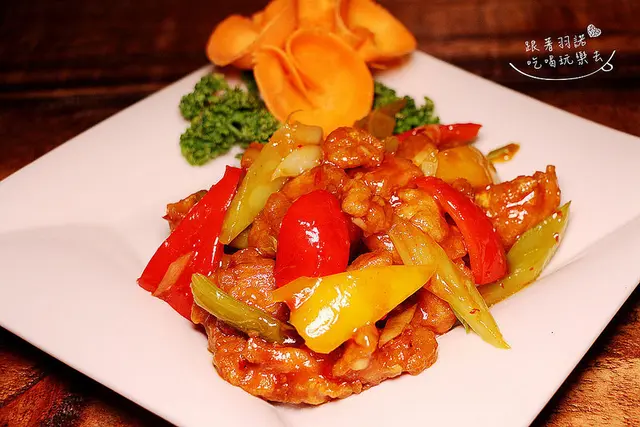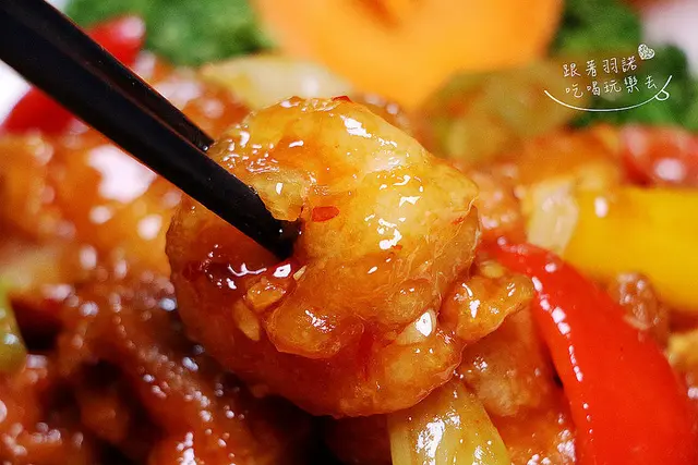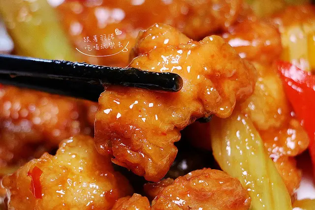 店家使用蝦仁及雞腿肉拌炒而成的遊龍戲鳳 看起來像是糖醋 但是其實這次主廚用特製的泰式醬料製成 蝦仁及雞腿肉油亮的外表超吸引人的 加上芹菜 甜椒更有口感肉質軟嫩 微酸微甜的滋味配飯超適合
