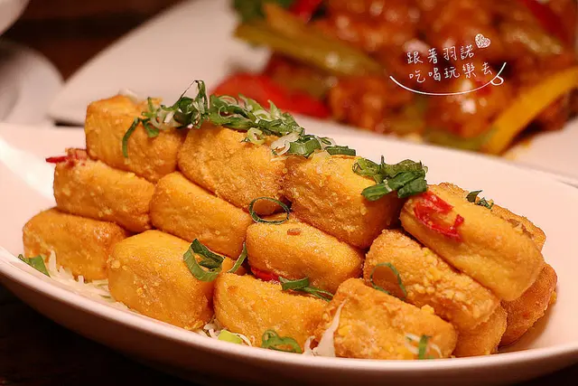 酒食坊豆腐莊老闆說這個酒食坊豆腐莊 是他們店的 招牌商品 諾咪忍不住筷子趕快一夾 一入口果然超美味 豆腐在油炸後更酥脆 外觀也相當完整 豆腐再沾裹上鹹蛋黃 最後灑上蔥末辣椒鹹鹹香香的好滋味 非常可口也很下飯哦