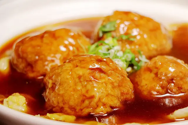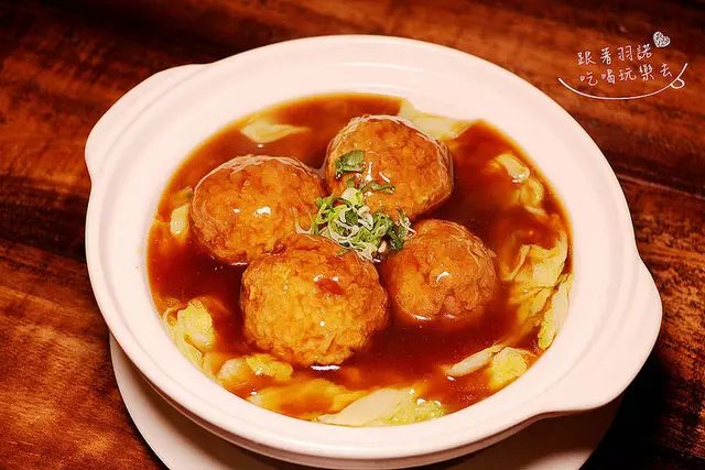 這是今天的壓軸菜 大大的肉丸子 光看就很有份量 濃濃的肉香配上白菜香氣 口水都快滴下來了!!