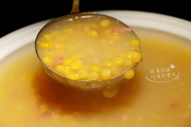 煙肉火腿玉米羹裡面加了 培根 火腿 跟滿滿粒粒分明的玉米