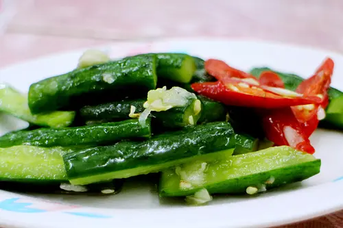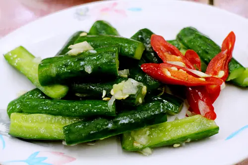 店家用蒜頭 辣椒 特製的醃小黃瓜