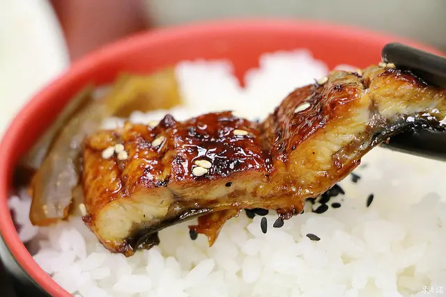 主角鰻魚 夾著一小塊的鰻魚跟白飯一起入口 甜甜鹹鹹的滋味不膩口 美味全都在口中 吃了一口就無法停下惹啦!!
