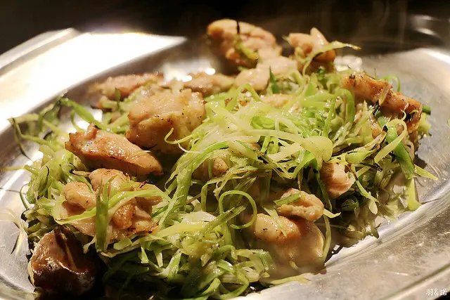 以加入麻油 鹽調味後的蔥白絲與雞肉一起烤熟後享用