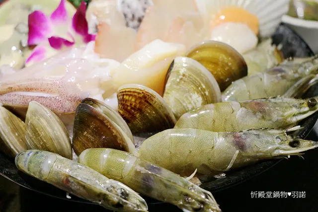 裏頭有著鮭魚 蛤蜊 扇貝 蚵仔 干貝 白蝦 鯛魚 海鱸魚 花枝超多種海鮮~