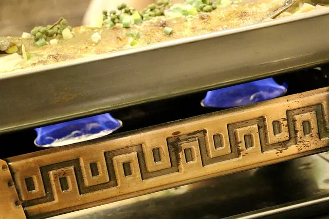 以焊接方式連接的渡鋼鐵架再放入燃燒酒精爐維持溫度