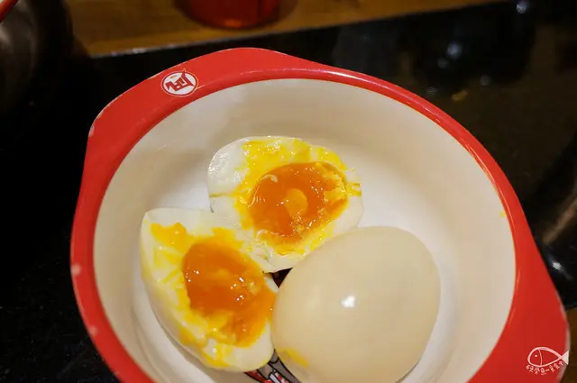 我先直接吃半顆,剩下半顆加入拉麵中混著豚骨高湯一起吃