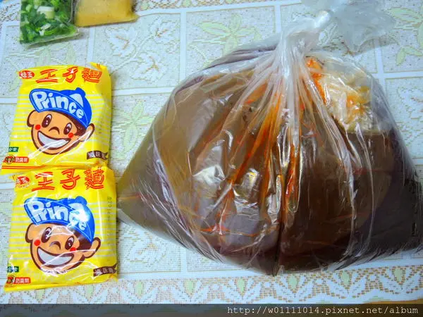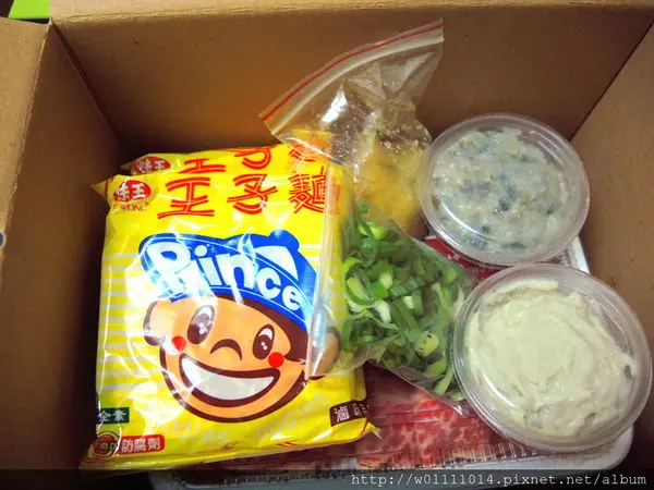 一打開看到麻辣鍋必備的王子麵兩包XDD 還有蔥蒜佐料