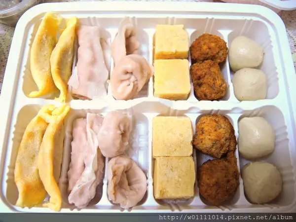 這盒有:手工川丸子、蛋餃、魚餃、燕餃、凍豆腐、脆丸~