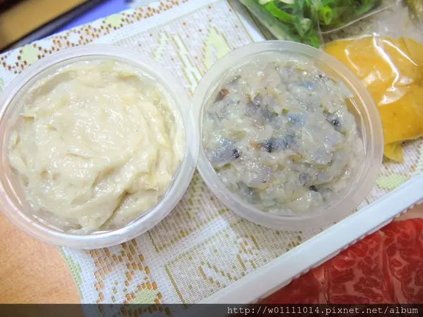手工花枝漿:是左邊那顆,顏色比較偏白一點,雖然沒有吃到什麼花枝塊~