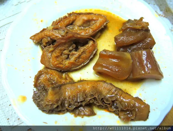 牛肚,口感跟大腸頭差不多,都是很軟Q軟Q,很適中的口感,不會難咬~味道又很香