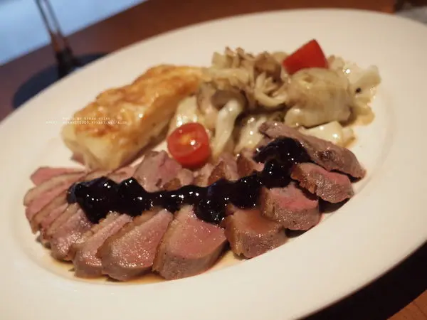 除了淋上鴨油封住鴨肉的香氣 還搭配藍莓醬