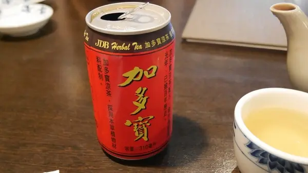 如果不想喝現泡的茶,飲料櫃裡頭還有很多飲料可以自已另外購買,像這次我們拿的這個-加多寶(王老吉)
