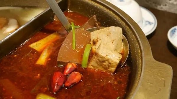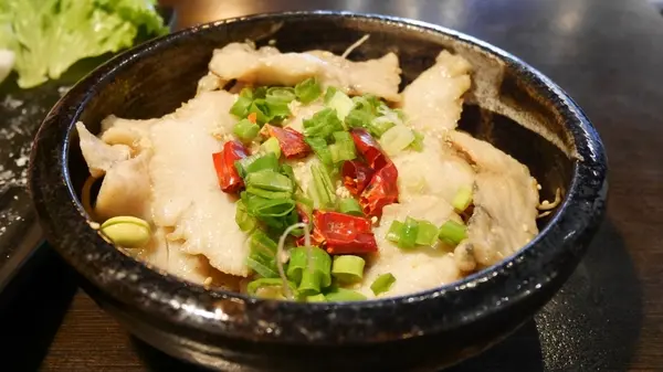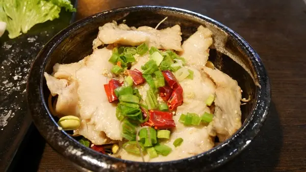 建議吃法是加入紅鍋裡頭輕涮幾下,讓魚片吸收紅鍋的香氣及麻辣,吃起來不但維持著軟嫩,吸滿湯汁的魚片更是好吃了。