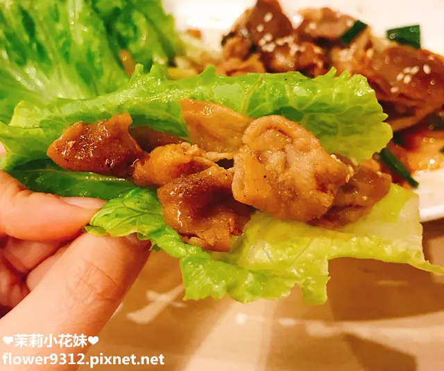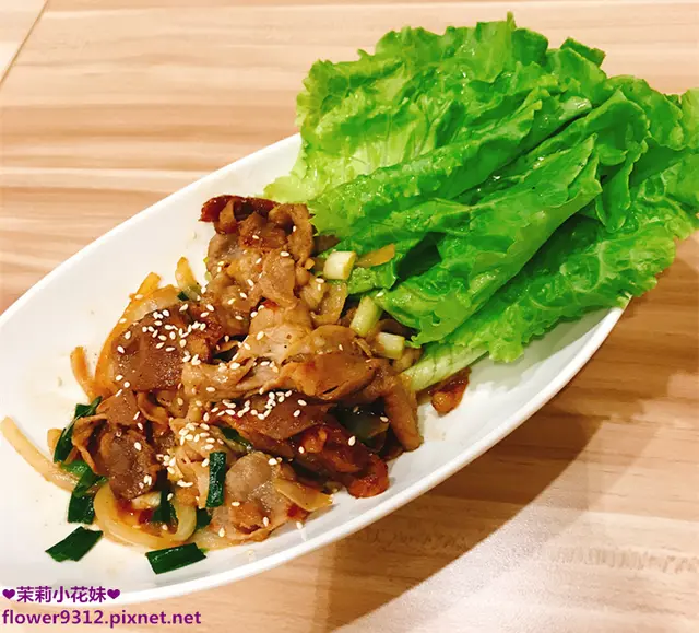 這樣子的呈現方式,讓我想到銅盤烤肉用生菜包肉的方式呢~