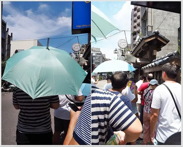 今天天氣太好、太陽超大,店家附近也沒什麼屋簷可以遮蔽,實在不是適合排隊的天氣><後來店家有出來發雨傘給在外面排隊的客人遮陽,但是都沒有發水給客人喝。