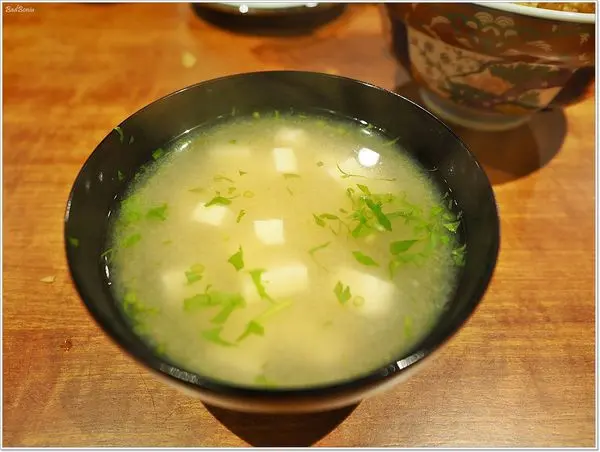 吃丼飯當然要配一碗味噌湯的啊!這味噌湯走清爽系,不會太鹹。