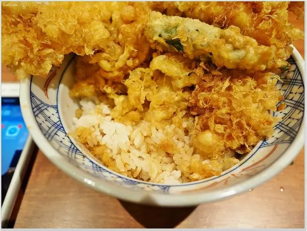 不過那五代目天丼上桌時波妞媽一直懷疑我的丼飯是不是有送錯啊?為什麼別人的魚都滿到碗外來了,我的魚就這麼小一條呢?後來把其他材料都拿走後,才有感覺魚比較變長一些XD