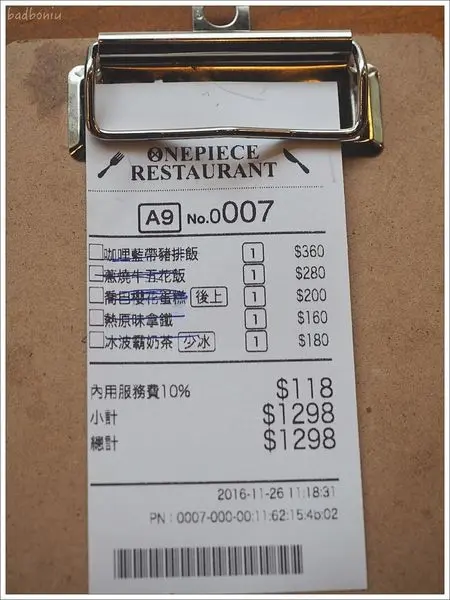 台灣海賊王餐廳,餐點來說算及格了,至少沒讓人想翻桌,蔥燒牛肉丼還蠻好吃的,咖哩飯也被壞波妞吃光光,價位跟其他主題餐廳也差不多「貴」,加上海賊王的魅力無法擋,這股排隊熱潮想來會持續很久!至於Menu請看最後面。