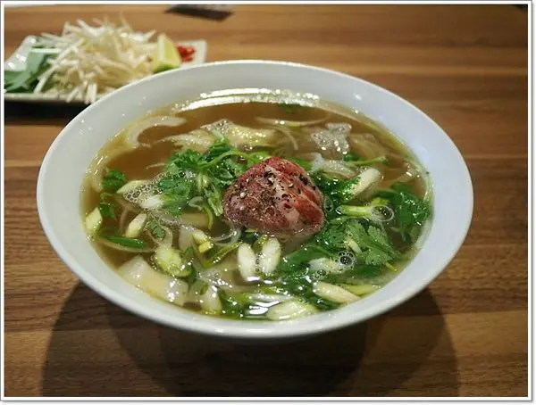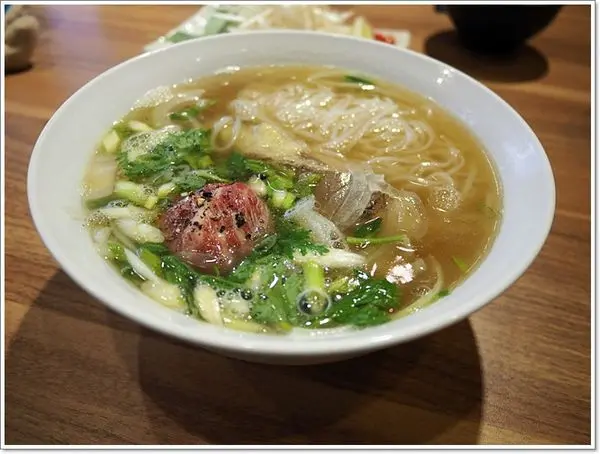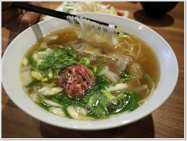 湯頭從顏色就看得出來比較濃郁,但喝起來還好,甚至還算清爽! 愛吃越南河粉的都知道,肉只是放進涮的,所以來的時候都是生的!