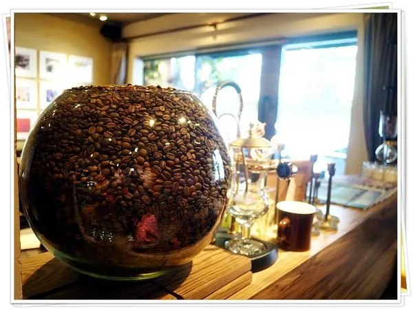 咖啡豆跟咖啡器具造景。我們座位就在這個旁邊,超怕壞波妞把人家東西弄壞弄破的(汗)