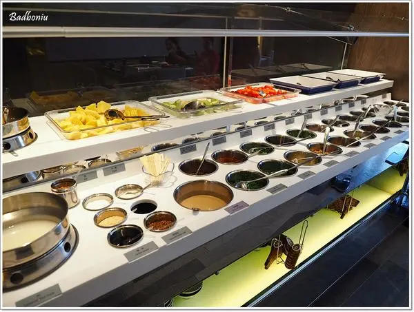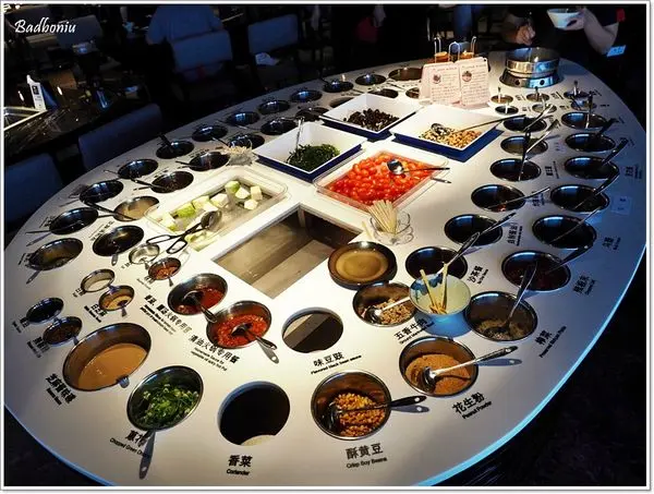 餐廳的中央是讓人眼花瞭亂的醬料區,可以自取搭配火鍋使用,而且完全無料喔!據說剛開幕的第一天還要受一人90元的醬料費呢~現在都不收了喔!