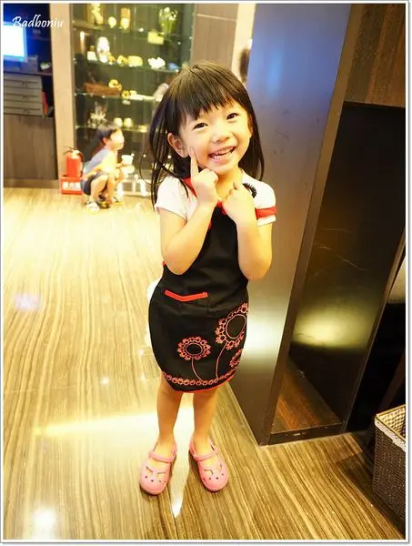 為了怕火鍋弄髒衣服,店家都會準備圍兜給客人使用,連小朋友都有提供喔! 感覺波妞很適合中國風的穿搭