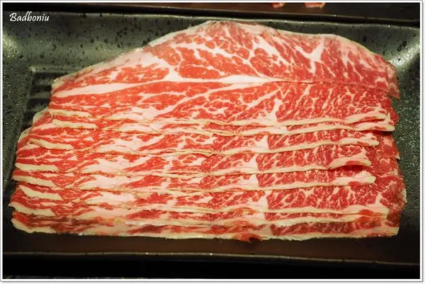 接下來肉片上桌。精品肥牛的肉質看起來不錯,顏色很漂亮,每一片都切得很薄,讓人可以很快就將肉涮熟。這只是半份的份量,比很多火鍋店的整份強上許多!