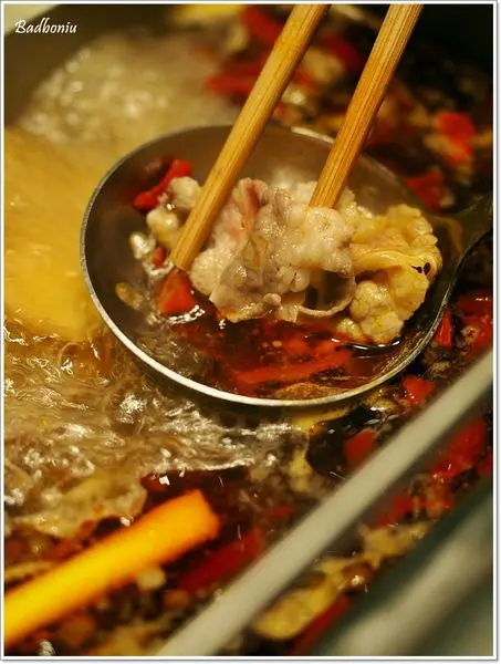 因為肉片真的切很薄,所以真的下去燙7秒馬上就熟了!不過因為鍋子很大,肉片下去後馬上就會搞失蹤,所以還是放在勺子上燙比較不會一直在鍋子裡撈肉。