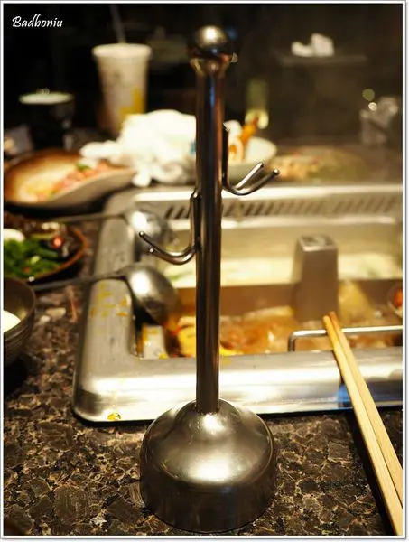 店家也貼心地想到大家手要一直拿著湯勺涮肉手會痠,居然還有這種涮肉架!將湯勺直接掛在架子上放入鍋中,就不用一直手拿著了,真的好方便。