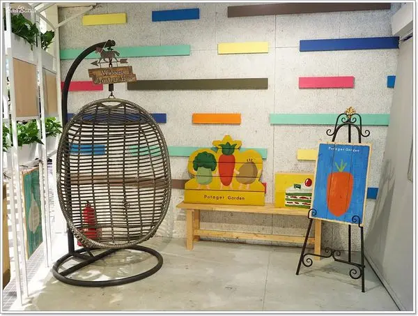 一旁的角落有吊藤椅裝飾,有一種放鬆的自在感。