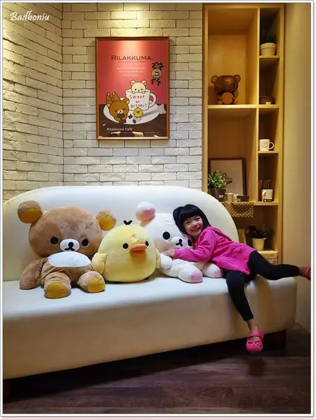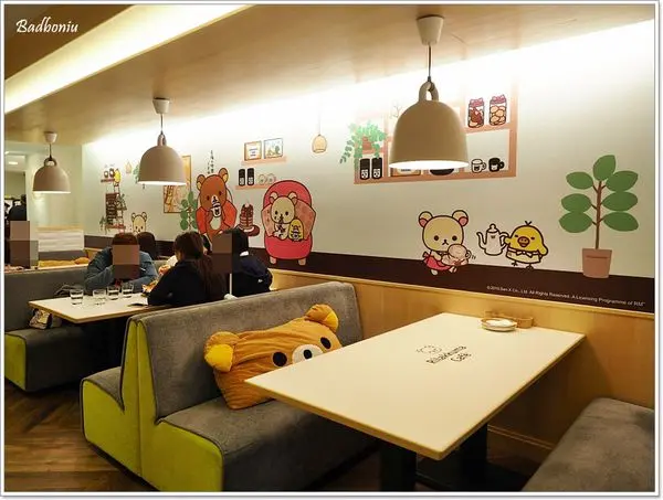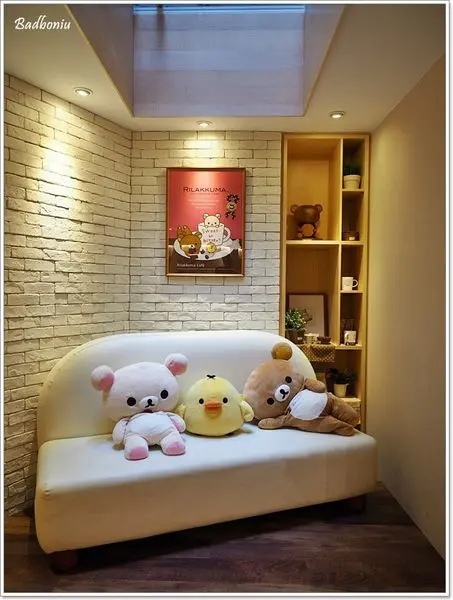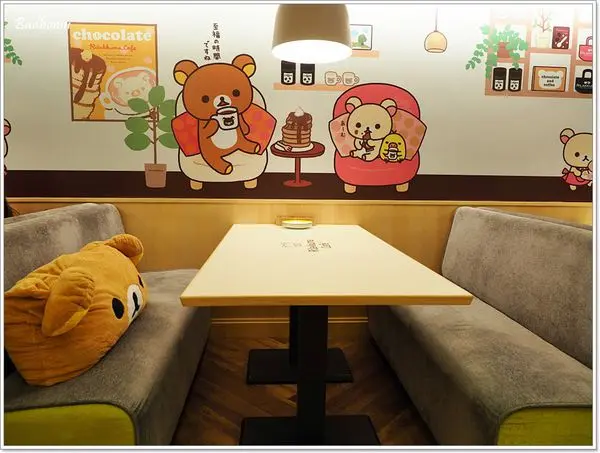 座位區還有拉拉熊的抱枕,牆上也有拉拉熊的彩繪壁貼。